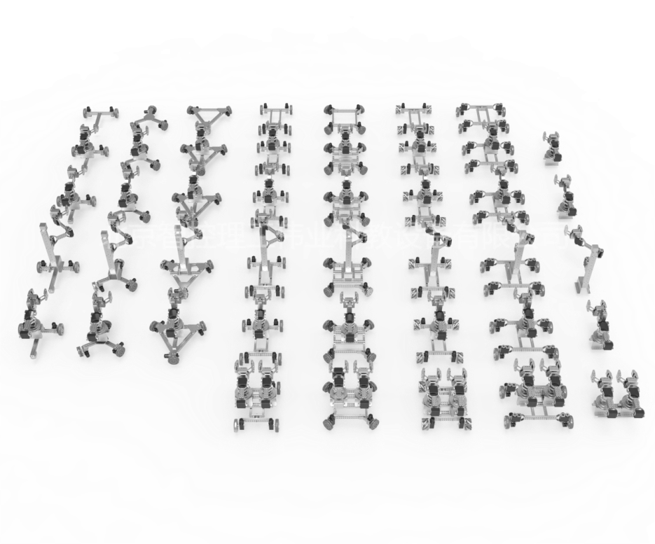 2.機器人零件:包含金屬結(jié)構(gòu)件、機器人執(zhí)行部件、五金零件。金屬結(jié)構(gòu)件主要材質(zhì)為航空鋁,表面氧化處理,共不少于100件,包含雙排孔梁型桿150、雙排孔梁型桿90、雙排孔梁型桿50、直流電機模組、擺動模組、夾持器模組、直線運動模組、轉(zhuǎn)臺模組、角度折彎件等。五金零件為鋼制螺絲、螺母、組裝工具等。